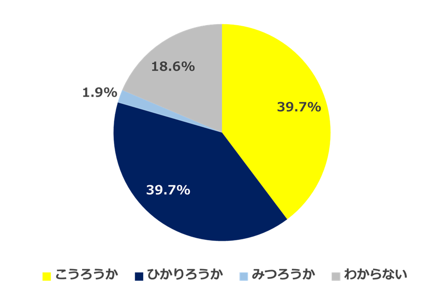 なお「光老化」の読み方については以下となり、正しい「ひかりろうか」、間違った「こうろうか」と回答した人が同数でした。