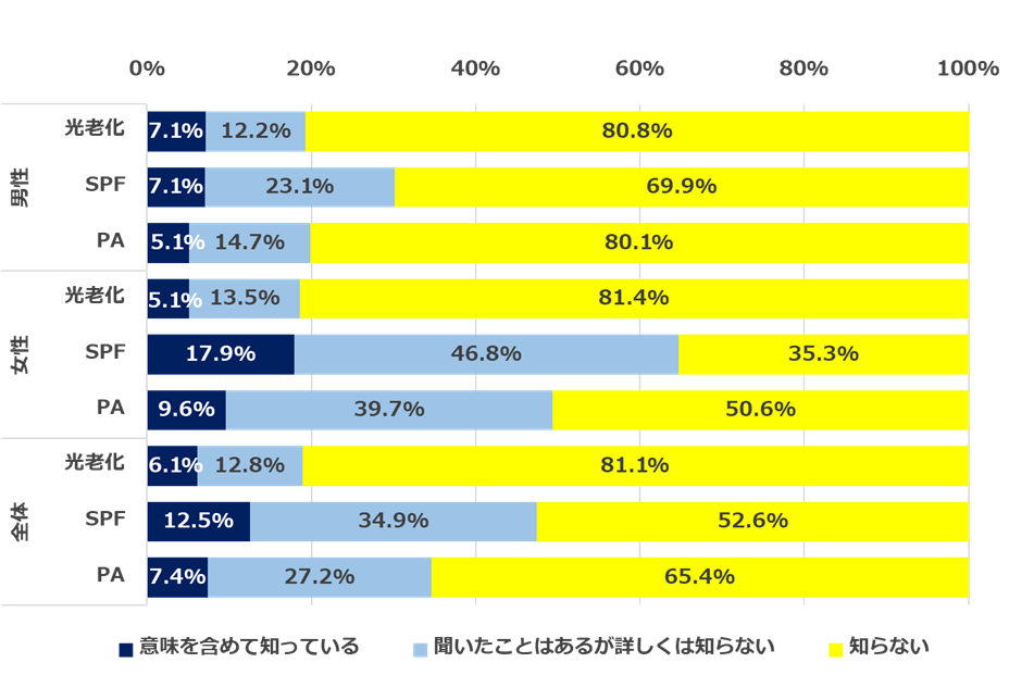 Q.あなたは『光老化』、『SPF』、『PA』という言葉を知っていますか。