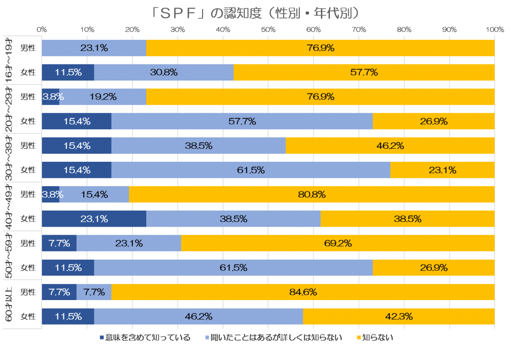 ※「SPF」、「PA」認知度(性別・年代別)に関しては下部の図をご参照ください。