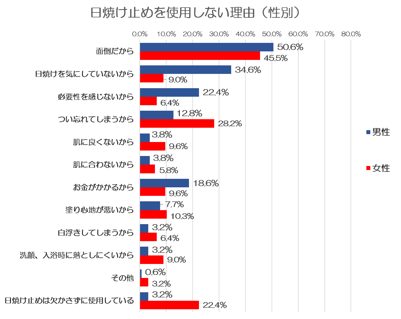 日焼け止めを使用しない理由_男女 | 光老化啓発プロジェクト光老化啓発プロジェクト